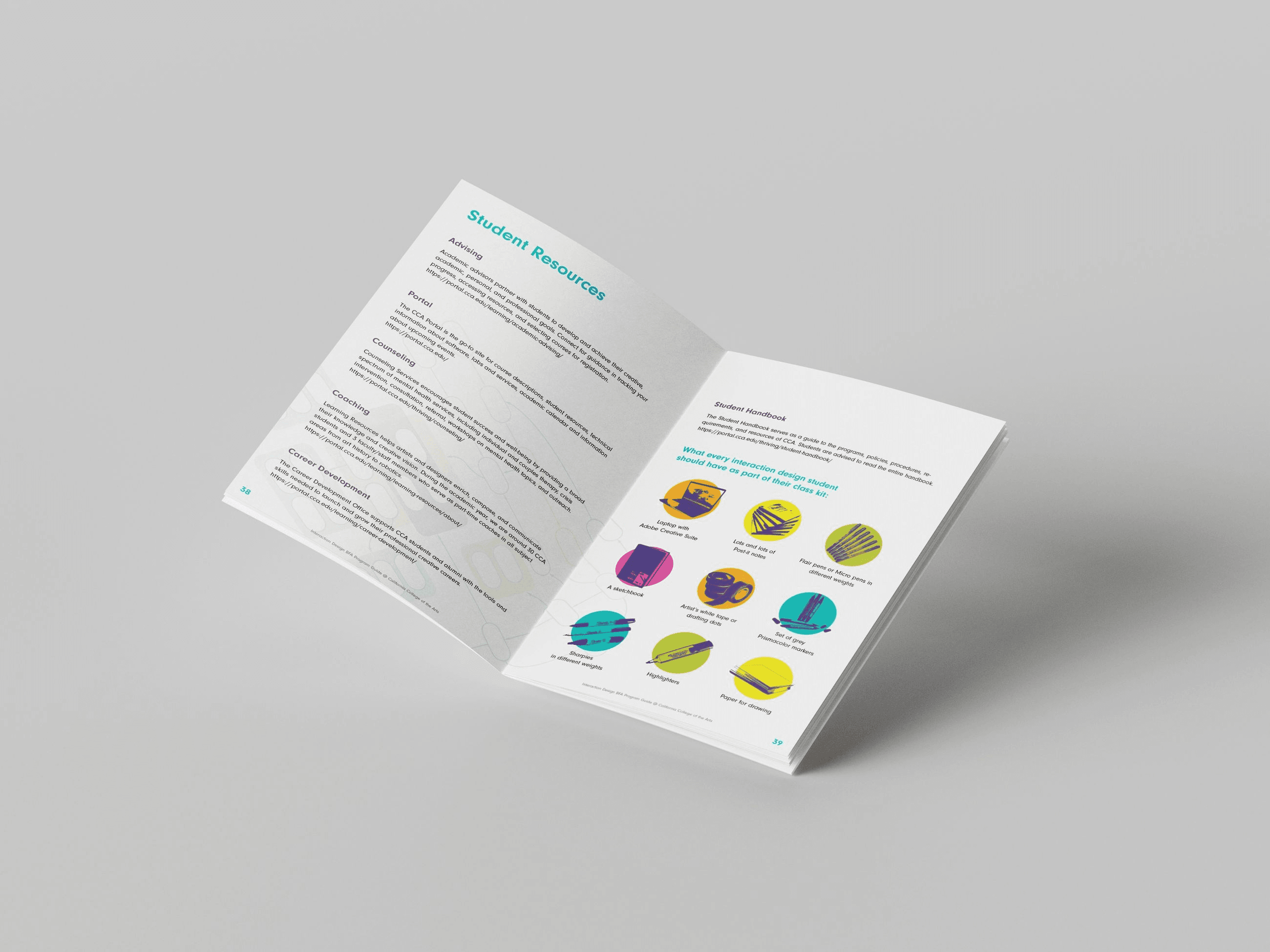 The Program Guide aims to showcase student work while capturing the distinctive spirit of CCA’s Interaction Design program. My goal is to create a compelling visual experience that invites readers to explore the program more deeply.